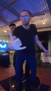 La plataforma 360 es una base que tiene una cámara que gira varias veces sobre el eje mientras los invitados bailan en ella. Luego se entrega un video para subir a redes sociales en cámara lenta. Un servicio novedoso y divertido.